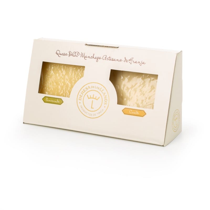 Disfruta de una cuña de nuestras curaciones más jóvenes (peso total mínimo garantizado: 700 g): Semi Curado y Curado con este estuche. Perfecto para una cata vertical del Mejor Queso del Mundo.